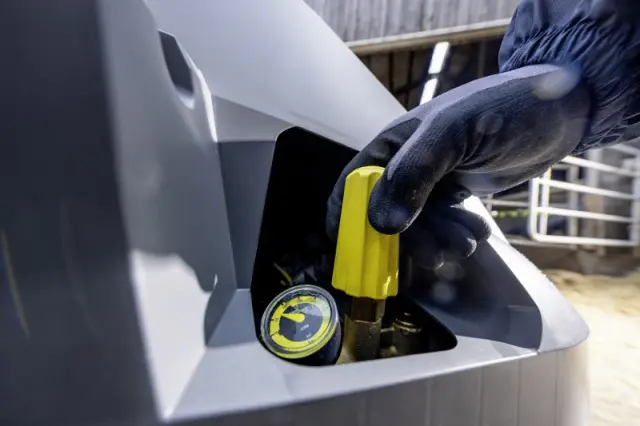 polnjenje posode za čistilo z zunanje strani, zaščita pred vodnim kamnom in gorivo