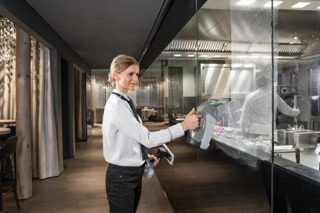Ni pomembno ali uporabljate naš ročni mokri sesalnik WVP 10 kot sesalnik za čiščenje oken, ploščic, ogledal, vitrin, polic ali katerih koli drugih gladkih površin. Pomembno je, da v vsakem položaju, če je potrebno celo nad glavo, Dosežete popolne rezultate čiščenja. To, med ostalim, zagotavlja hitro rotirajoči motor, ki ima znatno večji učinek sesanja, kot je običajno pri navadnih hišnih sesalniki. Poleg tega, ta baterijska, lahka in robustna naprava osvaja s premišljenimi detalji, kot npr. rezervoarjem za umazano vodo volumna 200 ml, ki se enostavno in hitro prazni in se po potrebi lahko enostavno opere v pomivalnem stroju. Ali tudi z držalom razmaka z manualnim nameščanjem za popolne rezultate, tudi na robovih. WVP 10 se izporoča z baterijo (trajanje 30 min), sredstvi za čiščenje, polnilcem, plastenko z razpršilcem in krpo iz mikrovlaken. Verzija WVP 10 Adv ima dodatno drugo bateriju, kot tudi hitri polnilec namesto enostavnejše izvedbe in tako omogoča skoraj neprekinjeno delo s površinskim sesalnikom WVP 10 Adv.