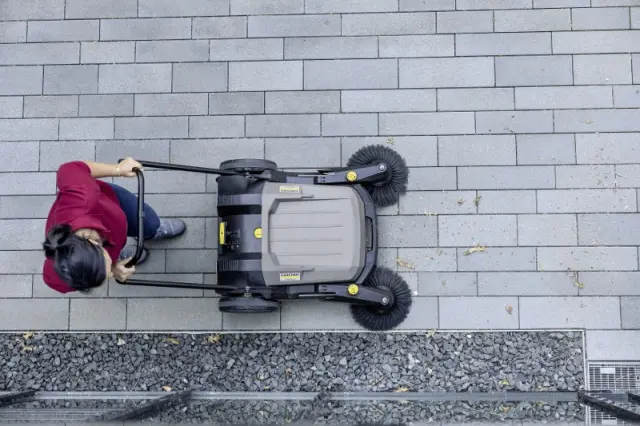 Ročni pometalni stroj KM 70/20 C 2SB čisti z 2 stranskima krtačama in pometalnim valjem. V kombinaciji z ročnim pogonom postane čiščenje notranjih in zunanjih površin preprosto in učinkovito: površinska zmogljivost KM 70/20 C 2SB je 9-krat večja kot pri metli. Pometalni valj je nastavljiv v 6 korakih in v kombinaciji z brezstopenjsko nastavljivimi stranskimi krtačami dosega optimalen rezultat čiščenja na različnih tleh. Uporabljeni filter omogoča pometanje skoraj brez prahu. Po višini nastavljiv potisni ročaj in sistem Home Base za prenašanje dodatne opreme, kot so vedra in pobiralci smeti, zagotavljata ergonomsko upravljanje. To pomeni, da je mogoče odpadke odstraniti skupaj s prahom in umazanijo v enem koraku. Ko je delo opravljeno, lahko KM 70/20 C 2SB shranite na prostorsko varčen način v parkirnem položaju.