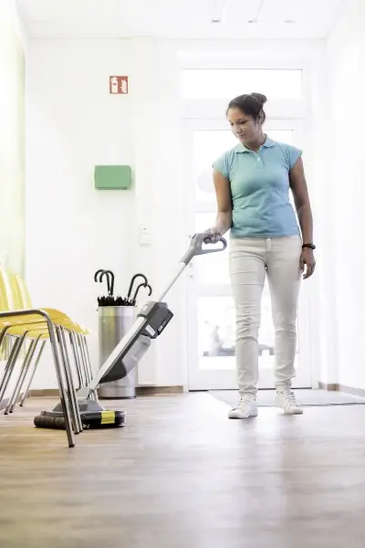 Idealno za higiensko vzdrževalno čiščenje in razkuževanje tal na majhnih površinah: kompaktni Kärcher baterijski čistilnik BR 30/1 C Bp Pack s tehnologijo valjev iz mikrovlaken.