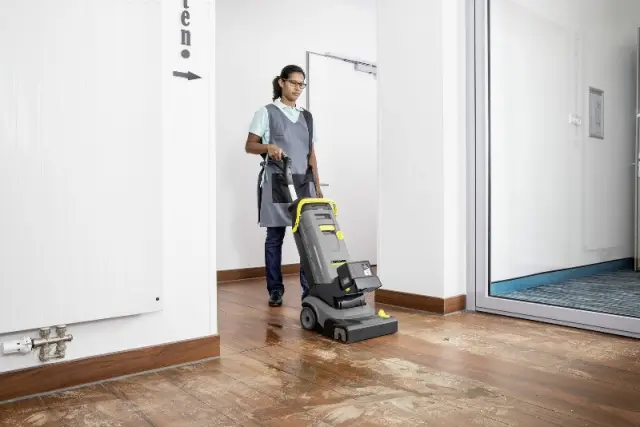 Naš čistilno-sesalni stroj BR 30/4 C Bp z baterijskim napajanjem tehta samo 14 kg in je zelo kompakten, tla pa bodo takoj po čiščenju suha in nedrseča.
