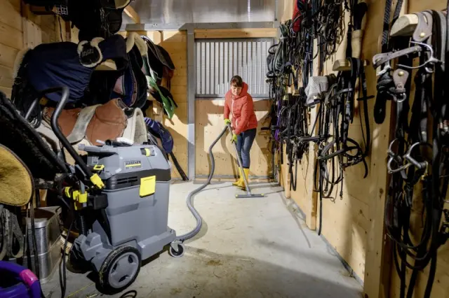 Profesionalen sesalnik za mokro/suho čiščenje NT 50/1 Tact Te z bogato opremo. Obsega posodo prostornine 50 l z nastavljivim potisnim ročajem in izpustno cevjo, ima pa tudi vgrajeno vtičnico za naprave.