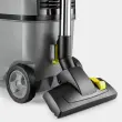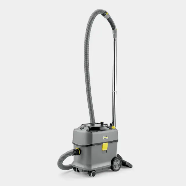 Naš sesalnik za suho sesanje T 15/1 je izdelan iz 45 odstotkov recikliranega materiala*, zato je izdelan na način, ki varčuje z viri. Navdušuje z izjemno sesalno močjo, izjemno tihim delovanjem, trajnostjo, robustnostjo in odličnim razmerjem med ceno in zmogljivostjo. Njegova vzdržljivost je očitna v lastnostih, kot so robustno podvozje, ohišje, odbijač in velika kolesa. Kljub visoki sesalni moči je hrup delovanja T 15/1 le 52 dB(A). Zahvaljujoč temu izjemno tihemu delovanju ga lahko kadar koli uporabljate za dnevno čiščenje in na mestih, ki so občutljiva na hrup. Kompaktni sesalnik je odporen na nagibanje in okreten ter ga je mogoče prenašati ergonomsko in blizu telesa z uporabo zložljivega nosilnega ročaja. Prostornina lijaka sesalnika je 15 litrov. Zahvaljujoč integriranemu shranjevanju pribora lahko priloženo šobo za reže vedno shranite na T 15/1 na dosegu roke. Opcijsko je mogoče kupiti zelo učinkovit filter HEPA 14.