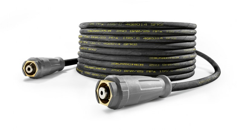 10-metrska visokotlačna cev (M 22 × 1,5) z zaščito pred pregibanjem. Vsebuje patentirani vrtljivi priključek AVS v pištoli in ročno spojko. DN 6/155 °C/250 barov.