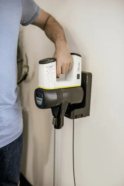 Stenski nosilec omogoča preprosto in hitro shranjevanje sesalnika.