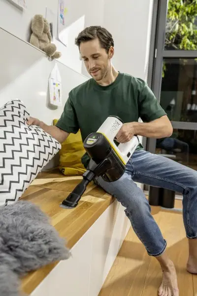 Čiščenje je lahko tako preprosto: z ročnim sesalnikom VC 6 Cordless ourFamily je sesanje pravi užitek. Številne pametne funkcije vključujejo praznjenje posode za prah z enim klikom, funkcijo povečanja moči, ergonomično obliko za čiščenje na težko dostopnih mestih in svetlečimi diodami na aktivni talni šobi, ki omogočajo boljšo vidnost prahu in zagotavljajo zanesljivo pobiranje umazanije. Dodatne prednosti vključujejo tudi tiho delovanje, posebno orodje za čiščenje filtra in lahko čitljiv prikazovalnik stanja baterije, ki vedno prikazuje trenutno stanje baterije in pomembna sporočila. Zraven spada tudi priročna funkcija Power Lock, zaradi katere med uporabo ni treba stalno pritiskati gumba za vklop. Stenski nosilec z vgrajeno polnilno funkcijo omogoča preprosto shranjevanje in polnjenje sesalnika. Vse trdo delo pri sesanju opravlja zmogljivi enosmerni brezkrtačni motor (250 W) v kombinaciji s 25.2 V baterijo.