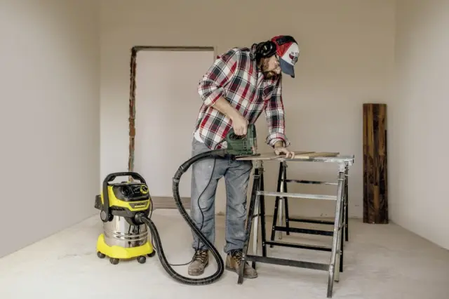 Vsestranski WD 5 P S V-25/5/22 Workshop je specialni sesalnik, ki je obvezen v vsaki hobi delavnici. Zagotavlja odlično sesanje, hkrati pa ostaja osupljivo učinkovit s porabo energije le 1100 vatov. Sesalnik za mokro in suho sesanje je opremljen s funkcijami, kot so robustna 25-litrska posoda iz nerjavečega jekla, 5-metrski kabel, 2,2-metrska sesalna cev, ploščat naguban filter in filter vrečka iz flisa. Zahvaljujoč reverzibilni šobi se hitro in temeljito znebi žagovine in majhnih kosov lesa na tleh. Občutljivejše površine, kot je leseno pohištvo ali razmetana delovna miza, lahko enostavno očistite s sesalno krtačo. Odstranljiv ročaj omogoča pritrditev različnih šob neposredno na sesalno cev, kar zagotavlja enostavno delo tudi v zaprtih prostorih. Kjer sesanje ni mogoče, lahko namesto tega uporabite koristno funkcijo pihanja. Druga praktična lastnost je, da lahko električna orodja preprosto priključite na električno vtičnico, ki ima samodejno stikalo za vklop/izklop. Umazanija, ki nastane pri žaganju ali brušenju, se neposredno odsesa. Ni treba posebej poudarjati, da je sesalnik opremljen z drugimi znanimi funkcijami opreme iz preizkušene serije Kärcherjevih mokrih in suhih sesalnikov.