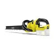 36V akumulatorski obrezovalnik žive meje HGE 36-60 Battery Set je pravi mišičnjak. Zaradi 2-stopenjske regulacije hitrosti je odvisno od načina uporabe mogoče izbirati med največjo hitrostjo in največjo močjo. Ročaj je mogoče nastavljati v več stopnjah po 180°, kar zagotavlja udobno delo v vsakem delovnem položaju – brez bolečin v rokah ali ramah, na primer pri navpičnem rezanju. Zelo praktično je tudi omelo za odrezke, ki ga lahko dodatno namestite. Tako odrezki ne končajo v živi meji, ampak priročno padajo na tla pred njo. Lasersko rezano in diamantno brušeno rezilo zagotavlja zelo natančen rez. Dodatni ščitnik konice rezila preprečuje poškodbe stavb in tal, pa tudi poškodbe rezila.