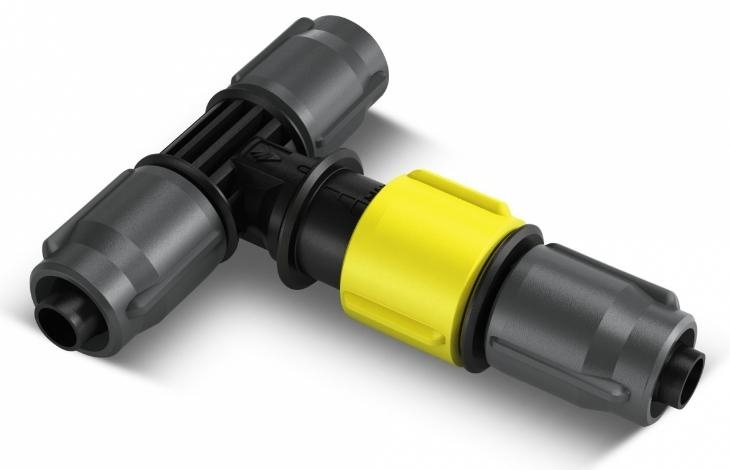 T-element z regulacijo je del Kärcherjevega sistema Rain Systems®. Povezuje tri cevi sistema Kärcher Rain Systems® oz. kapljalne cevi. Omogoča tudi dve ločeni napeljavi cevi. Tako lahko sistem odlično prilagodite individualnim zahtevam. Stranski iztok vode je nastavljiv (količina, tlak) in je optimalen za priklop na kapljalno cev. Montaža cevi je izjemno enostavna in zanjo ne potrebujete orodja. Cev enostavno potisnete na T-element in ga pritrdite s slepo matico. Najbolj učinkovit Kärcherjev Rain System® združuje prednosti kapljalnega (Micro-Dripping) in navadnega zalivanja, deluje s tlakom do 4 bare in vam nudi cev s premerom 1/2'' s kapljalnimi in pršilnimi manšetami. Sistem lahko individualno nastavite glede na posamezen tip vrta in odlično deluje s SensoTimer-jem za uravnavanje zalivanja glede na potrebe.