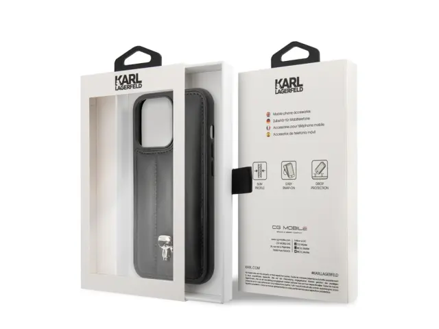 Karl Lagerfeld, Apple iPhone 14 Pro PU ohišje Puffy Ikonik Pins, ?rna