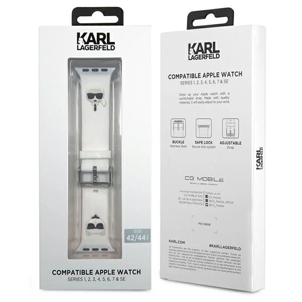 1x Karl Lagerfeld KLAWLSLCKW pašček za Apple Watch 42/44/45 mm bel/bel pašček Silikonske glave Karl & Choupette