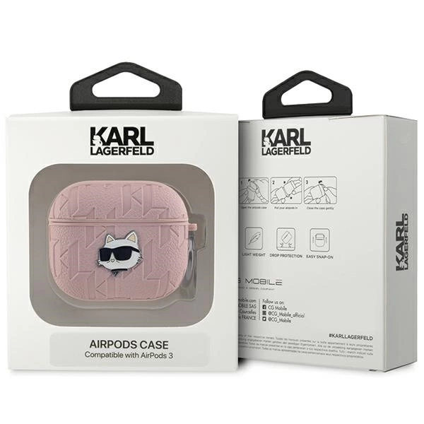 Ohišje Karl Lagerfeld Monogram Choupette Head ne izstopa le po svojem razkošnem dizajnu, ampak tudi po svoji vzdržljivosti, zahvaljujoč kateri bodo vaši AirPods 3 vedno v popolni obliki. Ikonski monogram Choupette in elegantna roza barva sta popolna kombinacija mode in zaščite.