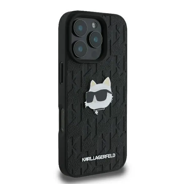 KARL LAGERFELD MONOGRAM CHOUPETTE HEAD PIN OVITEK ZA IPHONE 16 PRO - ČRN