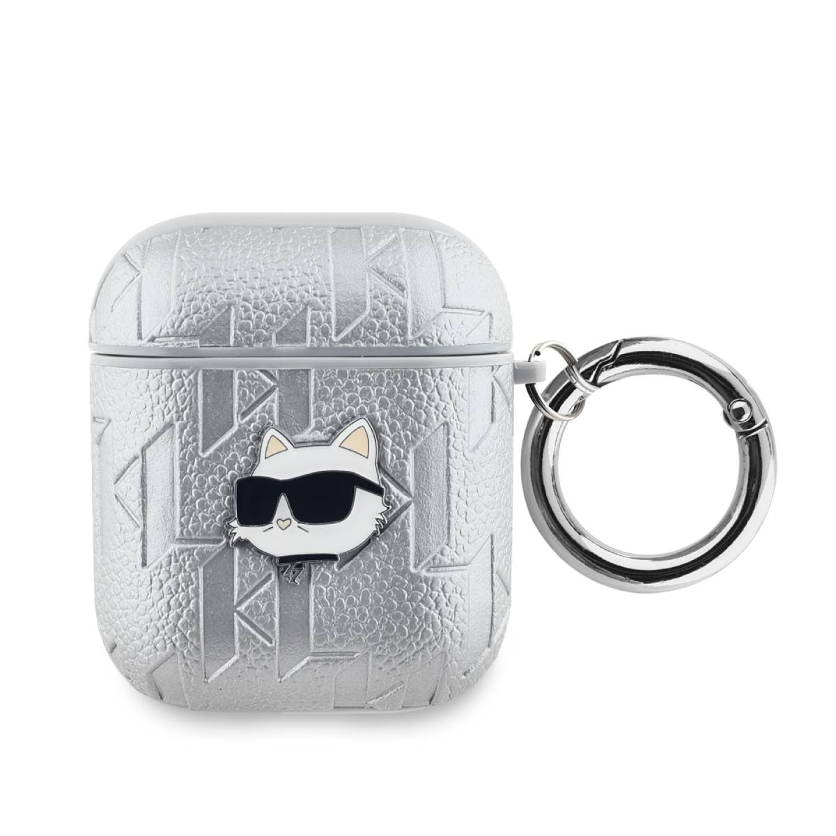 Karl Lagerfeld, Ohišje za AirPods 1/2 Choupette z reliefom, Srebrna