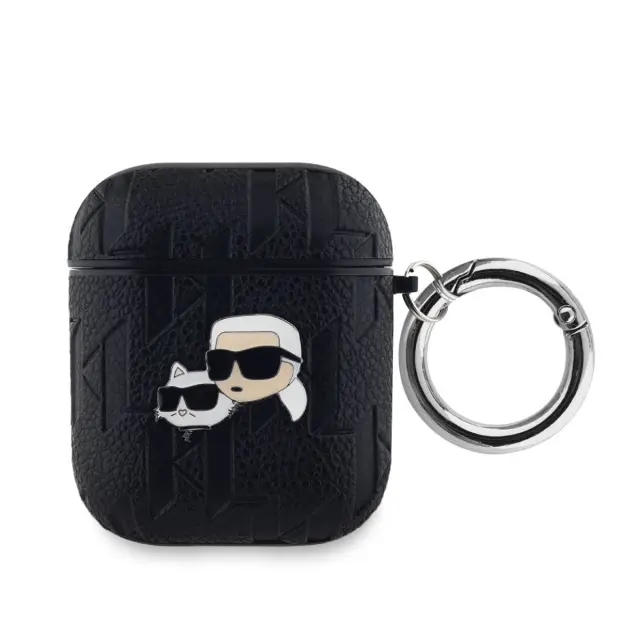 Karl Lagerfeld, Ohišje za AirPods 1/2 z vzorcem Karl in Choupette Embossed, Črna