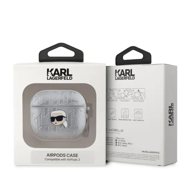 Karl Lagerfeld, Ohišje za AirPods 3 z monogramom in reliefnim motivom Karl Head, Srebrna