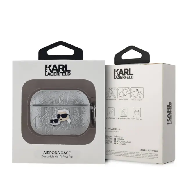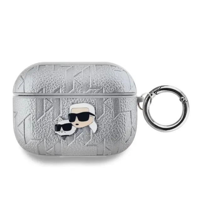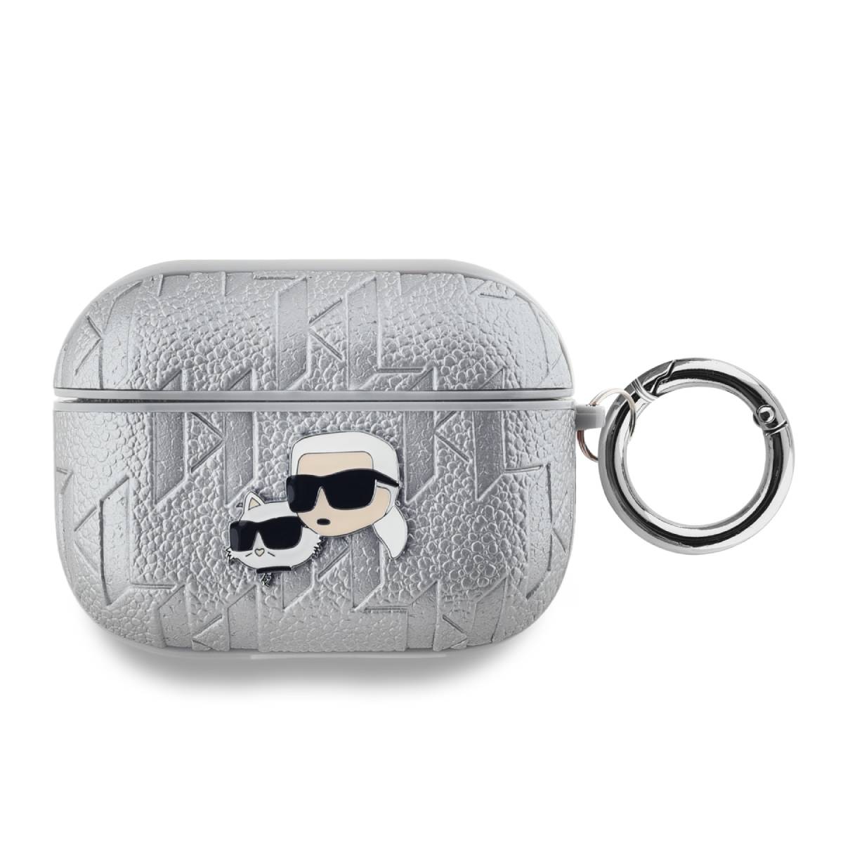 Karl Lagerfeld, Ohišje za AirPods Pro z reliefnim dizajnom Karl and Choupette, Srebrna