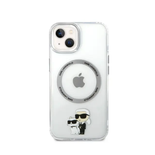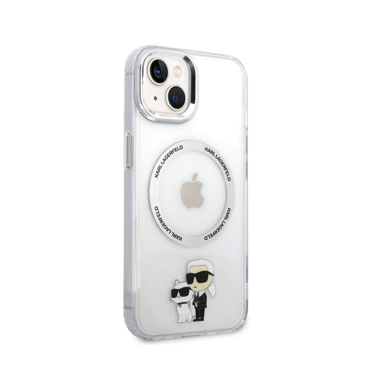 Karl Lagerfeld, Ohišje za iPhone 14 Printed Karl in Choupette MagSafe Compatible, Prozorno