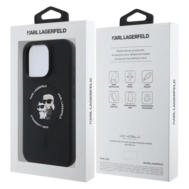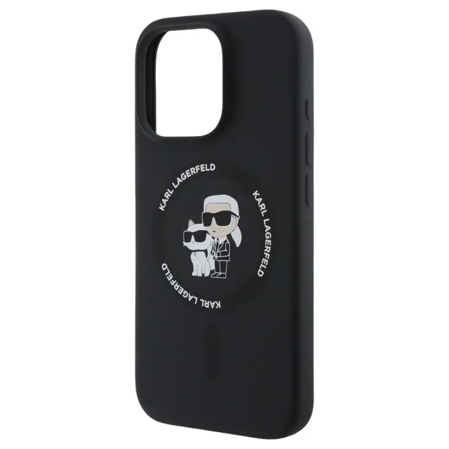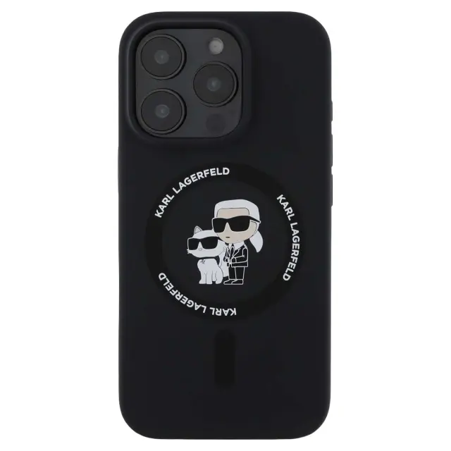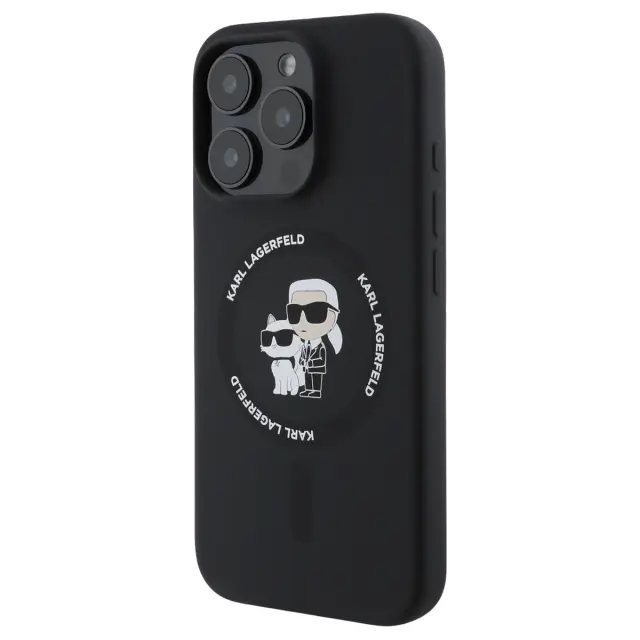 Ta črni tekoči silikonski ovitek za iPhone 16 Pro premium ima mehko nedrsečo površino za stabilen oprijem.. Vgrajena združljivost MagSafe pomeni, da lahko brezžično polnjenje in magnetne dodatke uporabljate brez odstranjevanja ohišja. Notranja obloga iz finih mikrovlaken pomaga zmanjšati mikro praske na hrbtni strani pametnega telefona. Motiv Karl in Choupette dodaja izrazit vizualni pečat in lupino spremeni v eleganten dodatek..