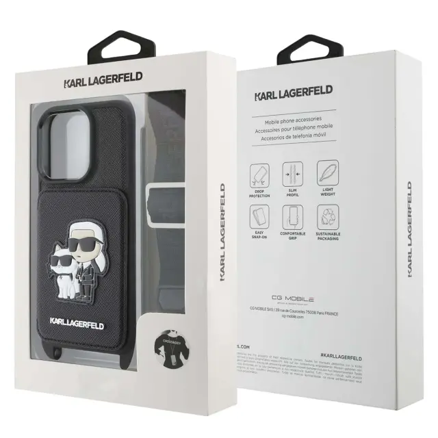 Izvirni etui Karl Lagerfeld v dizajnu Karl & Choupette z elegantno, vrhunsko črno obdelavo. Usnjeni naramni trak Saffiano, s katerim lahko iPhone nosite navzkrižno in imate proste roke. Učinkovita zaščita pred udarci in praskami, kot nalašč za vsakdanjo uporabo. Praktičen modni dodatek za potovanja in izhode, ki združuje slog in funkcionalnost..