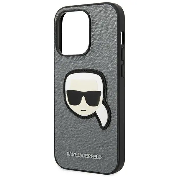 KARL LAGERFELD SAFFIANO KARL'S HEAD PATCH OVITEK ZA IPHONE 14 PRO SREBRNA