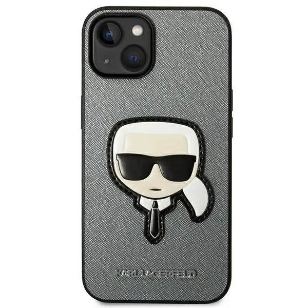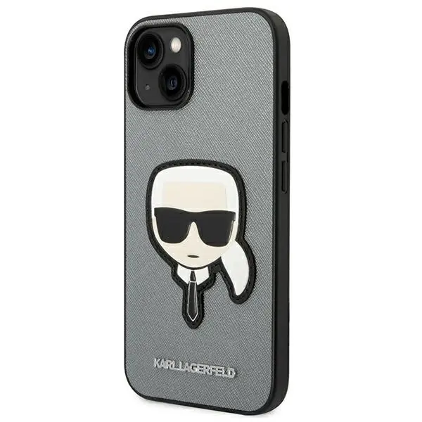 KARL LAGERFELD SAFFIANO OVITEK KARL'S HEAD PATCH ZA IPHONE 14 PLUS SREBRN