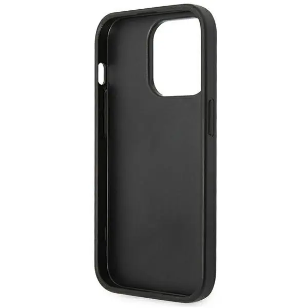 Ohišje po meri za Apple iPhone 14 Pro Max. Ta etui, ki ga krasi srebrn kovinski logotip s podobo oblikovalca, je namenjen mešanemu občinstvu, ki ceni eleganco in preprostost.. Izdelan je iz kombinacije gladkega sintetičnega usnja, poliuretana in TPU ter rahlo dvignjen okoli zaslona in kamere.. Ta serija zagotavlja vrhunsko zaščito pametnega telefona pred nevarnostmi vsakdanjega življenja..