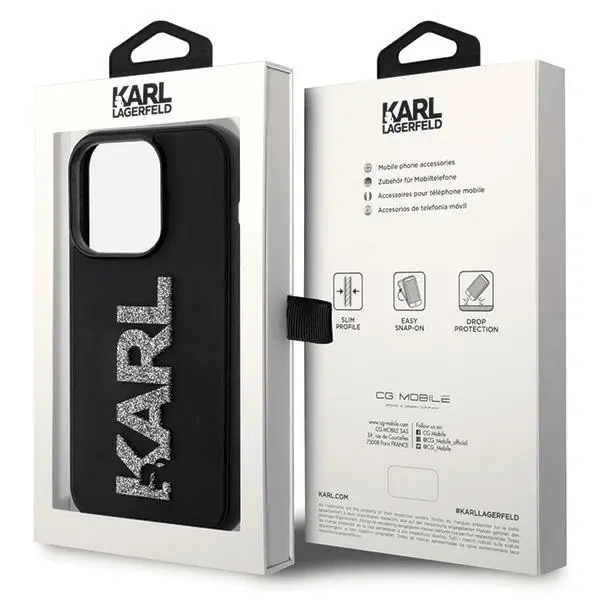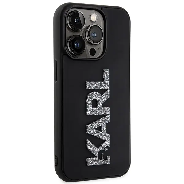 Karl Lagerfeld zaščitni ovitek 3D Black Rubber Glitter Logo, Iphone 15 Pro