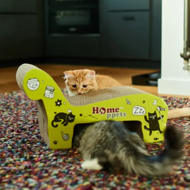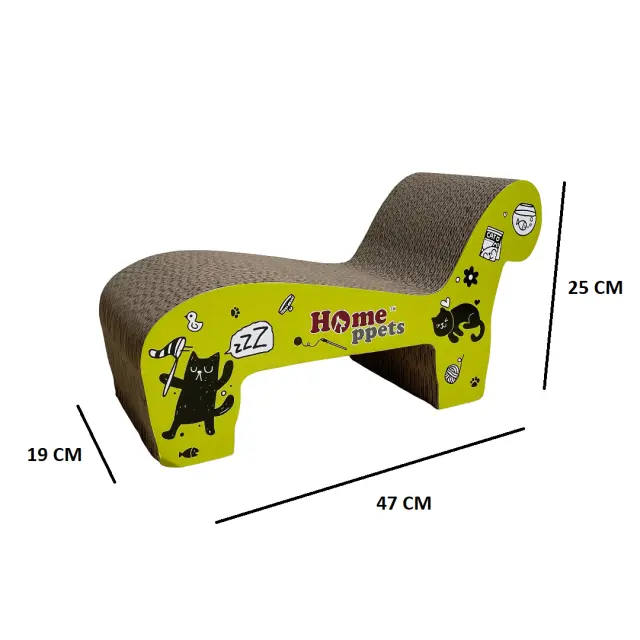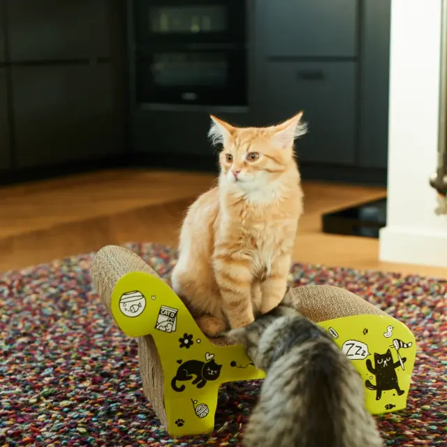 Kartonski praskalnik za mačke v obliki fotelja predstavlja praktično rešitev za lastnike mačk, ki želijo svojim ljubljenčkom zagotoviti ustrezen prostor za vsakodnevne aktivnosti. Izdelek je zasnovan tako, da združuje funkcije praskanja, igranja in počitka na enem mestu, kar spodbuja naravno vedenje mačk. Izdelan je iz trpežnega kartona, ki omogoča učinkovito nego krempljev, hkrati pa nudi udobno površino za sprostitev živali. Uporaba praskalnika v bivalnem prostoru pomaga ohranjati mačje zdravje in zadovoljstvo v varnem domačem okolju.