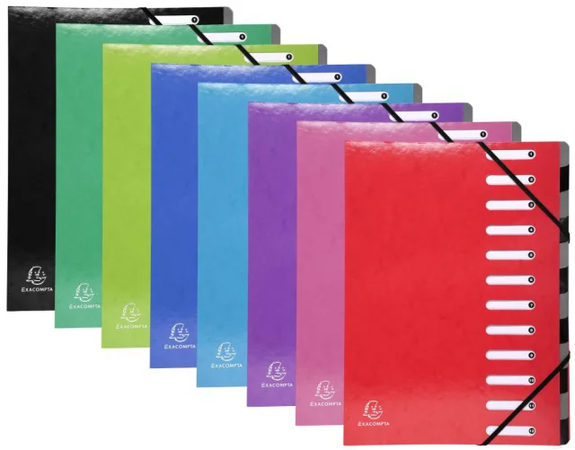 iz premazanega kartona Manila 600 g/m², črni in sivi notranji predelki iz kartona 225 g, z kotnimi elastikami, kapaciteta: max 600 listov DIN A4, mere: (Š) 240 x (V) 320 mm (53923E) Pomembni podatki: Izvedba: 12 Prekat Format: A4 Barva: janeževo zelena Embalaža Bre