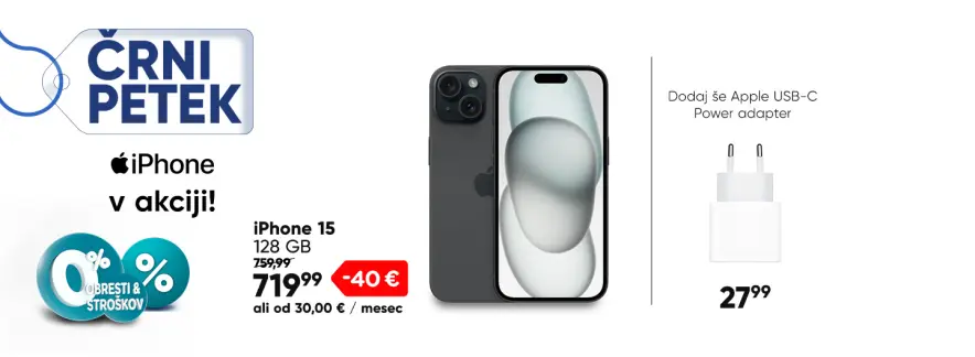 APPLE iPhone 15 256GB BlackNa voljo v 10-12 delovnih dnehProdajalec: Big BangBrezplačna poštninaDodaj v košarico