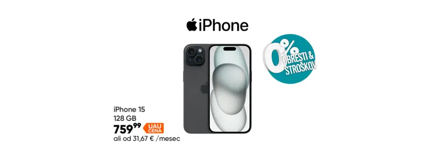 APPLE iPhone 15 128GB (Black) pametni telefonNa zalogiProdajalec: Big BangBrezplačna poštninaDodaj v košarico