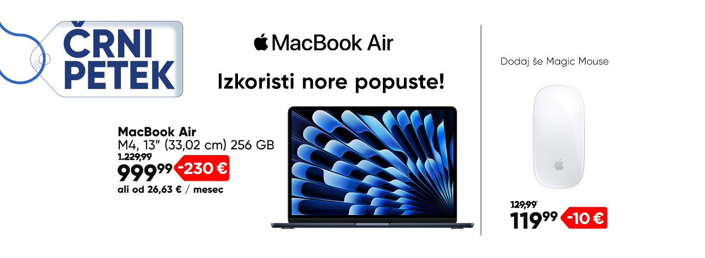 APPLE MacBook Air M4 13 10C CPU/8C GPU/16GB/256GB-CRO MIDNIGHT prenosni računalnikNa zalogiProdajalec: Big BangBrezplačna poštninaDodaj v košarico