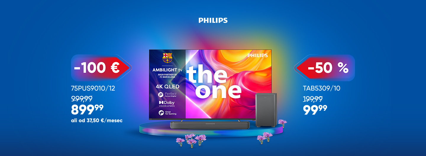 Ob nakupu izbranih Philips Ambilight televizorjev prejmi soundbar PHILIPS TAB5309/10 50 % ceneje. Dodaj željeni televizor ter soundbar skupaj v košarico in cena se bo avtomatsko znižala. Ponudba traja do 4. 5. 2026.