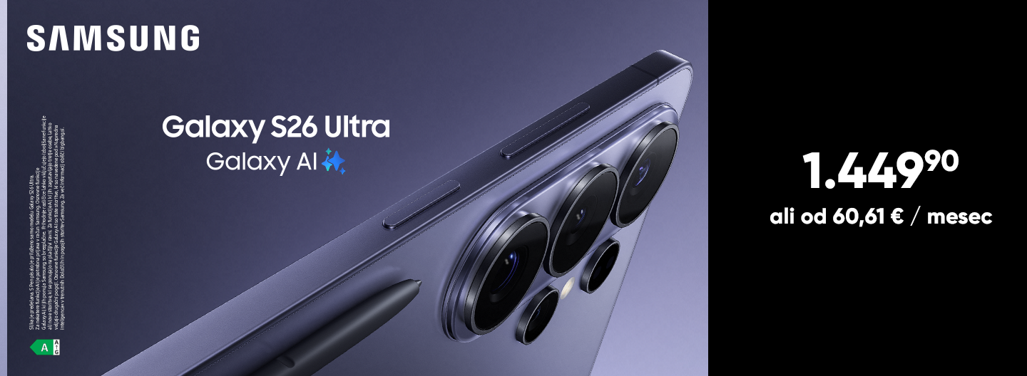Dodaj na seznam željaRAZREZANA CENA Pametni telefon SAMSUNG Galaxy S26 Ultra, 256 GB, vijoličen (S948)Na zalogiProdajalec Big BangBrezplačna poštnina za člane kluba1.449,99 €ali od 60,42 € / mesec Dodaj v košarico