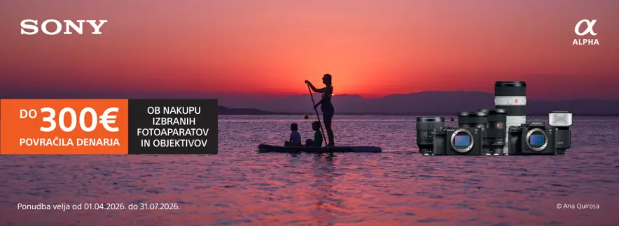 Akcijska ponudba velja le ob nakupu izbranih Sony modelov iz akcije in traja od 1. 4. do 31. 7. 2026 oz. do razprodaje zalog. Kako do vračila. Pravila in pogoji.