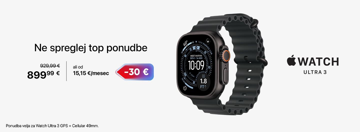 Dodaj na seznam želja-30,00 €Apple Watch Ultra 3 GPS + Cellular 49mm Black Titanium Case with Black/Charcoal Trail Loop - S/MNa zalogiProdajalec Big BangBrezplačna poštnina za člane kluba899,99 €929,99 €ali od 15,15 € / mesec Dodaj v košarico