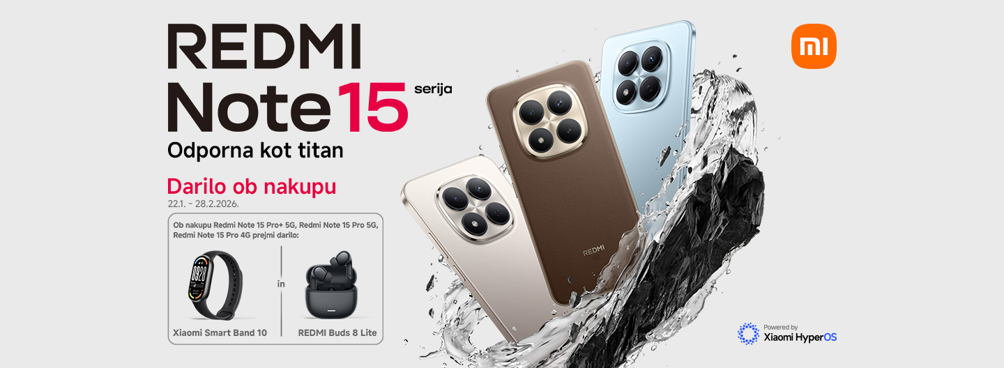 XIAOMI REDMI Note 15 Pro 5G Titanium Color 8/512GBNa voljo v 2-4 delovnih dnehProdajalec: Big BangBrezplačna poštninaDodaj v košarico
