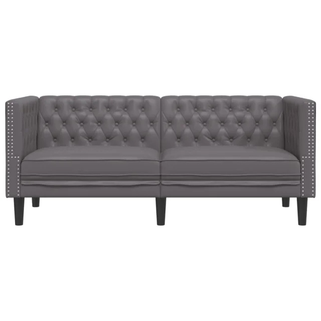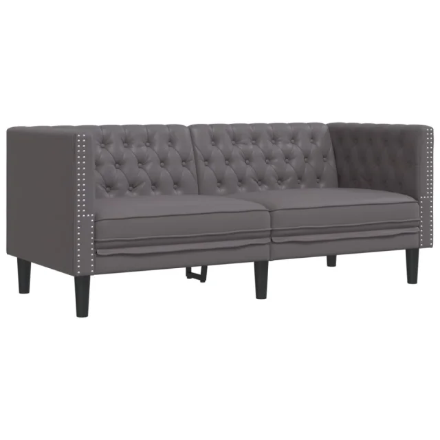 kavč - Sofa - Kanape dvosed Chesterfield siva umetno usnje
