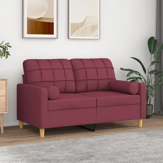 kavč - Sofa - Kanape dvosed z blazinami vinsko rdeč 120 cm blago