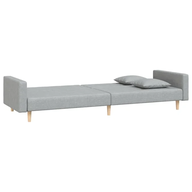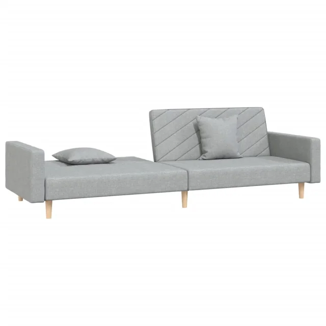 kavč - Sofa - Kanape dvosed z ležiščem in dvema blazinama svetlo sivo blago
