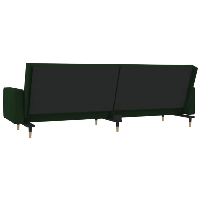 kavč - Sofa - Kanape dvosed z ležiščem in dvema blazinama temno zelen žamet