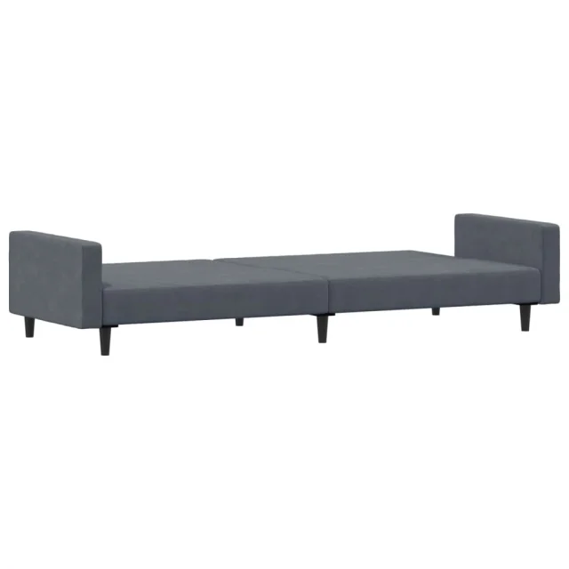 kavč - Sofa - Kanape dvosed z ležiščem in stolčkom za noge temno siv žamet
