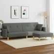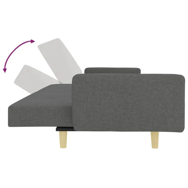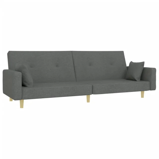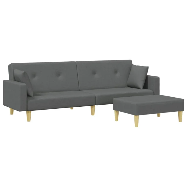 kavč - Sofa - Kanape dvosed z ležiščem in stolčkom za noge temno sivo blago