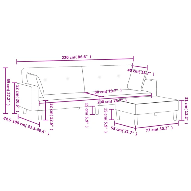 • Celotne dimenzije: 220 x 84,5 x 69 cm (D x Š x V)