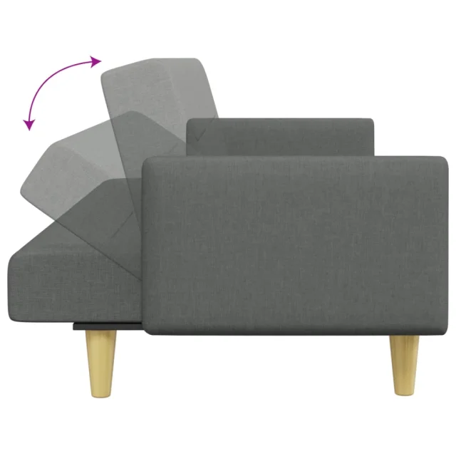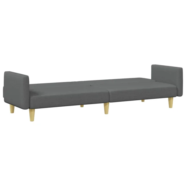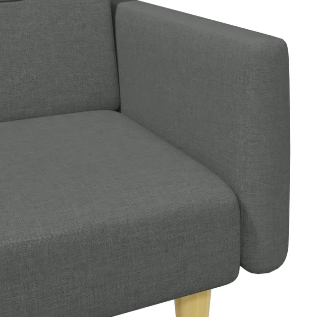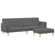 kavč - Sofa - Kanape dvosed z ležiščem in stolčkom za noge temno sivo blago