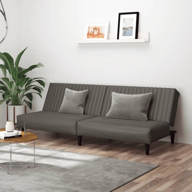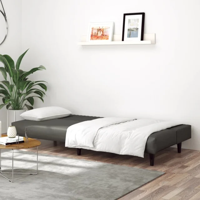 kavč - Sofa - Kanape dvosed z ležiščem sivo umetno usnje