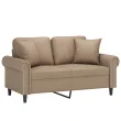 kavč - Sofa - Kanape dvosed z okrasnimi blazinami kapučino 120 cm umetno usnje