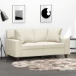 kavč - Sofa - Kanape dvosed z okrasnimi blazinami krem 120 cm umetno usnje