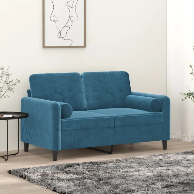kavč - Sofa - Kanape dvosed z okrasnimi blazinami moder 120 cm žamet